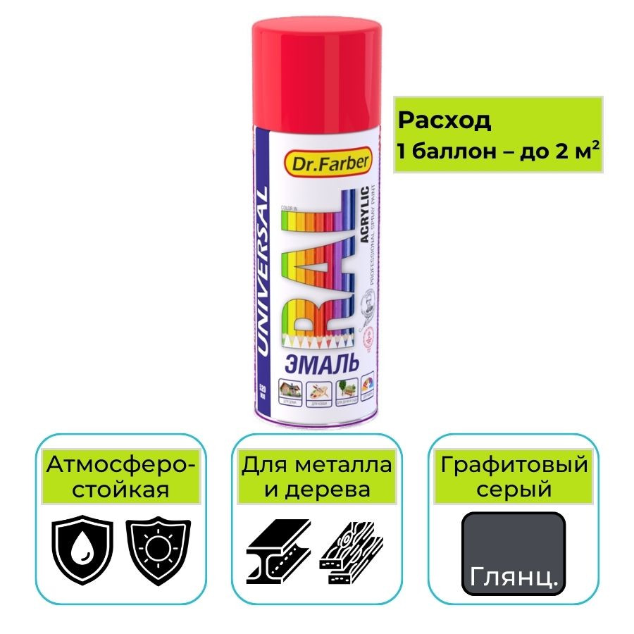 Купить Эмаль-аэрозоль Dr. Farber графитовый серый глянцевая 520 мл акриловая универсальная RAL 7024 можно с доставкой в