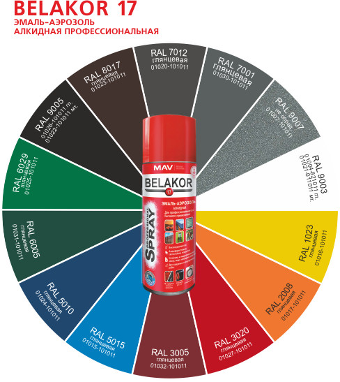 Эмаль-аэрозоль алкидная профессиональная MAV BELAKOR 17 RAL 7001 серебристо-серый глянцевая 520 мл предназначена для качественного, быстрого и равномерного окрашивания небольших по размеру объектов (садово-парковая мебель, окна, двери, инвентарь, кованые изделия, элементы ландшафтного, интерьерного дизайна, кроме полов) при проведении ремонтных, декоративно-оформительских и художественных работ в бытовых условиях.