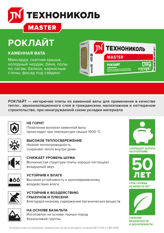 Этот материал является результатом передовых технологий производства компании ТехноНИКОЛЬ, ведущего производителя строительных материалов в СНГ. Благодаря уникальному сочетанию высокой эффективности и доступной цены, этот утеплитель стал выбором номер один для профессиональных строителей и частных застройщиков. Он отличается легкостью монтажа, долговечностью и способностью сохранять свои свойства на протяжении всего срока эксплуатации.