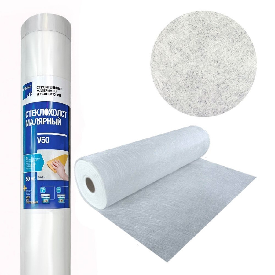 Малярный стеклохолст (паутинка) SEMIN СМИТ V50 (50 м2) под покраску – это рулонный материал на основе стекловолокна плотностью 50 г/м². Волокна из кварцевого песка, соды, извести и доломита соединяются связующим на базе ПВС, проходят полимеризацию и превращаются в готовое полотно. Продукт упакован в термоусадочную пленку, готов к транспортировке и хранению.