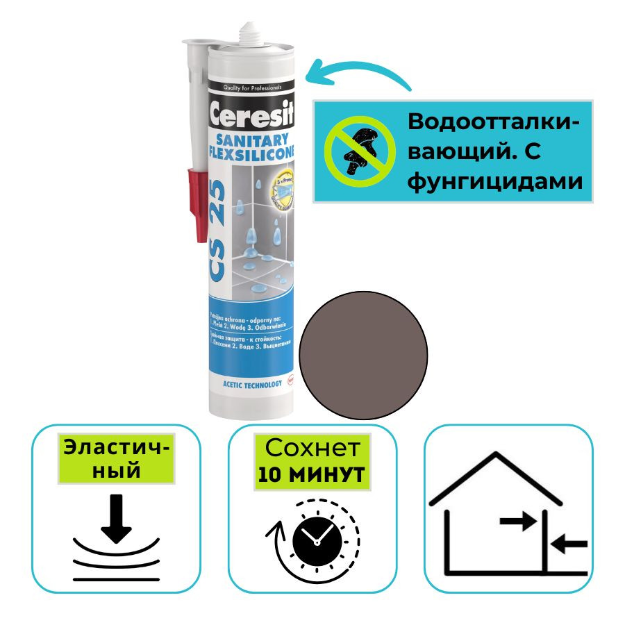 Купить Герметик силиконовый санитарный Ceresit CS 25 шоколад №58 280 мл можно с доставкой в