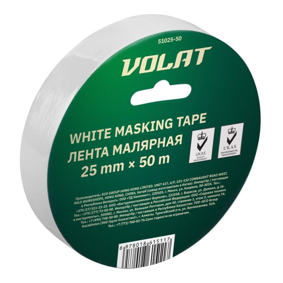 Купить Лента малярная бумажная 25 мм х 50 м ВОЛАТ белая (51025-50) можно с доставкой в