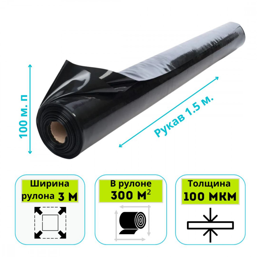 Купить Пленка полиэтиленовая вторичная 100 мкм (рукав 1.5 м) ширина 3 м, 100 м.п. можно с доставкой в