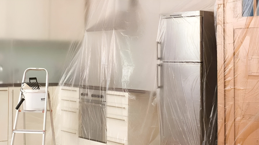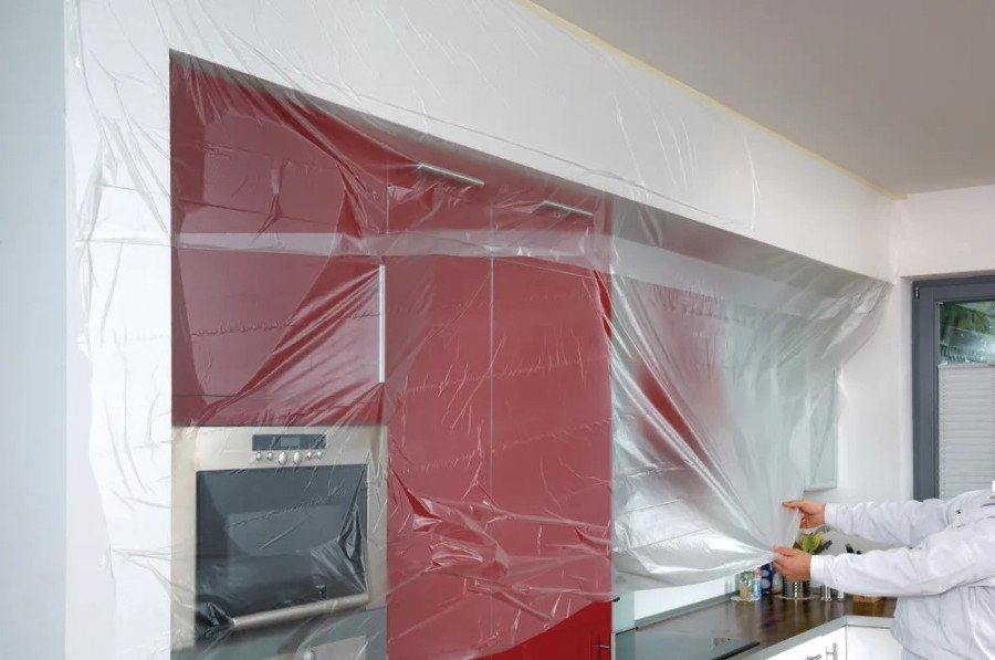 Укрывная защитная полиэтиленовая пленка Scley служит удобным инструментом для изоляции поверхностей во время строительства.