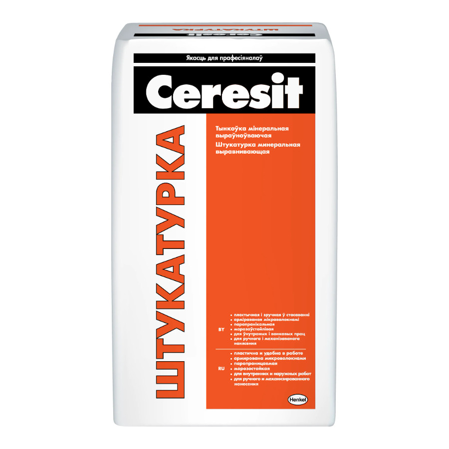Штукатурка цементная выравнивающая Ceresit - это удобный, привычный и бюджетный вариант для выравнивания и стартовой отделки стен и потолков зданий. Также штукатурную смесь Ceresit используют для заделывания трещин, сколов, в местах где отслоилась старая отделка.