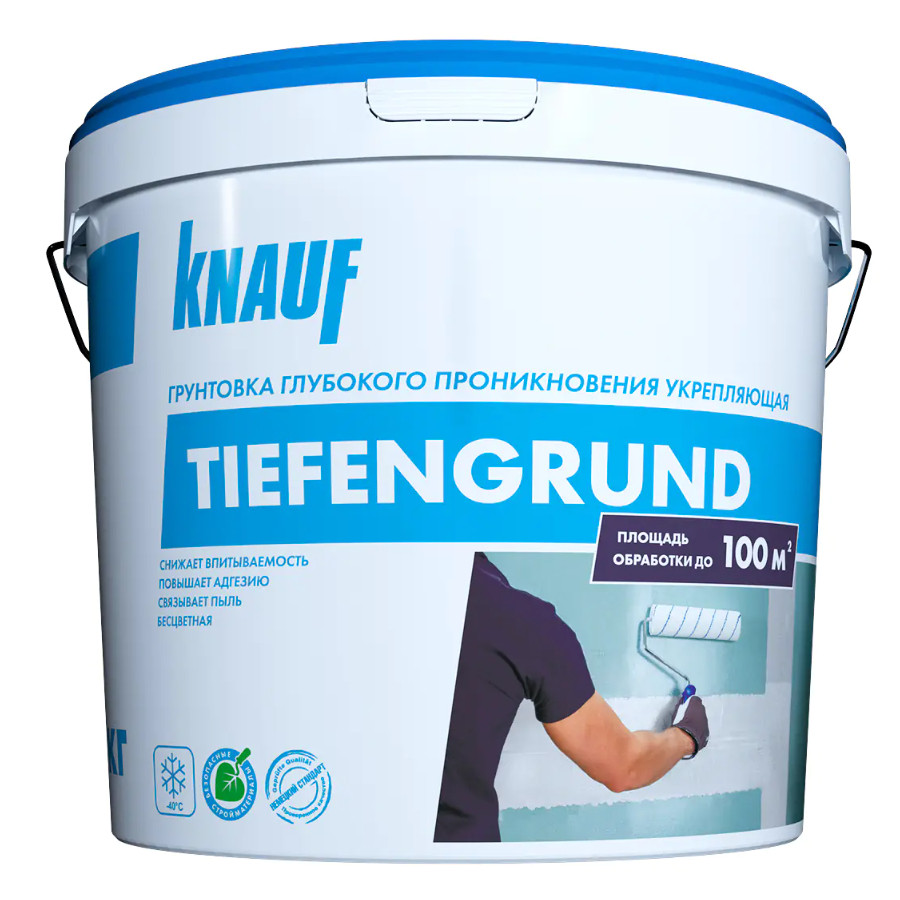 Использую Кнауф Тифенгрунд на объектах регулярно, особенно для подготовки гипсокартона и пеноблоков под шпаклёвку и покраску. Материал глубокого проникновения, реально укрепляет основание и снижает его впитываемость, что экономит расход клея и краски. Наносится легко кистью или валиком, главное хорошо перемешать перед работой. Белый цвет помогает контролировать нанесение, а после высыхания грунтовка становится прозрачной, не влияет на финишный слой. Время высыхания около 3 часов, что удобно для планирования работ. На сильно рыхлых поверхностях иногда приходится наносить два слоя, но это стандартная практика. При больших площадях лучше использовать валик с длинным ворсом, тогда слой ложится равномернее и быстрее. В целом продукт надёжный, даёт предсказуемый результат, клиенты всегда довольны. Для профессиональных задач это проверенный вариант.