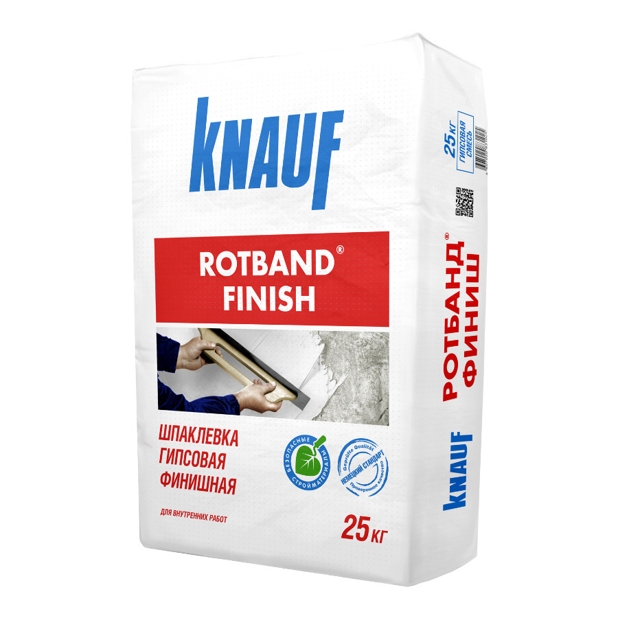 Шпатлевка гипсовая Кнауф Ротбанд-финиш 25 кг – высококачественный отделочный материал, который предназначен для выравнивания стен и потолка, устраняет мелкие неровности, трещины, и хорошо подготавливает поверхность под покраску или поклейку обоев. Подходит для внутренней отделки.