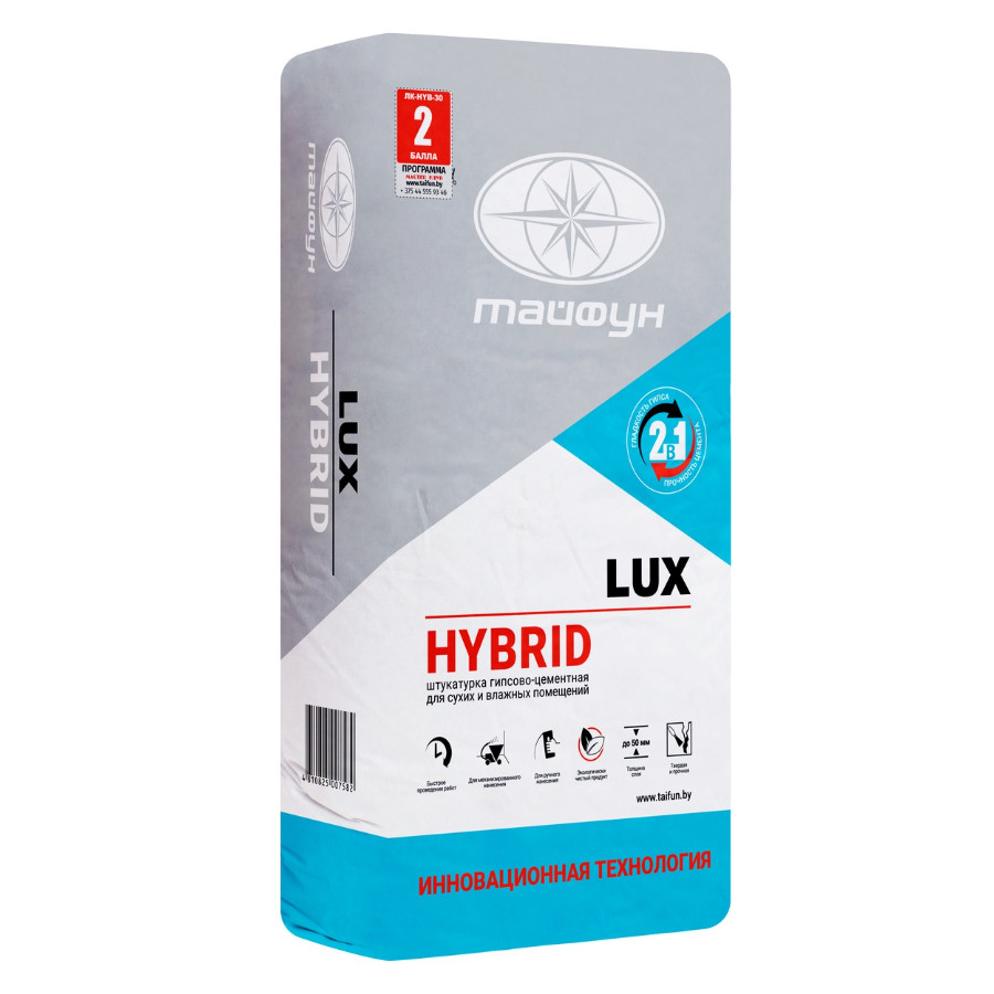 Штукатурный состав Люкс Гибрид (Lux Hybrid) применяется для выравнивания поверхностей стен, потолков и перегородок из различных материалов внутри зданий с нормальным и влажным режимом эксплуатации помещений.