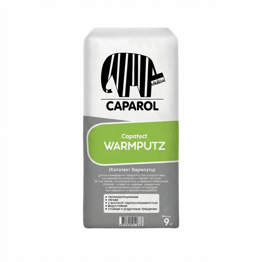 Caparol Capatect Warmputz (Капарол Капатект Вармпутц) 9 кг - это штукатурная легкая выравнивающая смесь, цементно-известковая, М35, F75, Пк2. Усилена армирующими волокнами. Идеальна для оштукатуривания газосиликата.