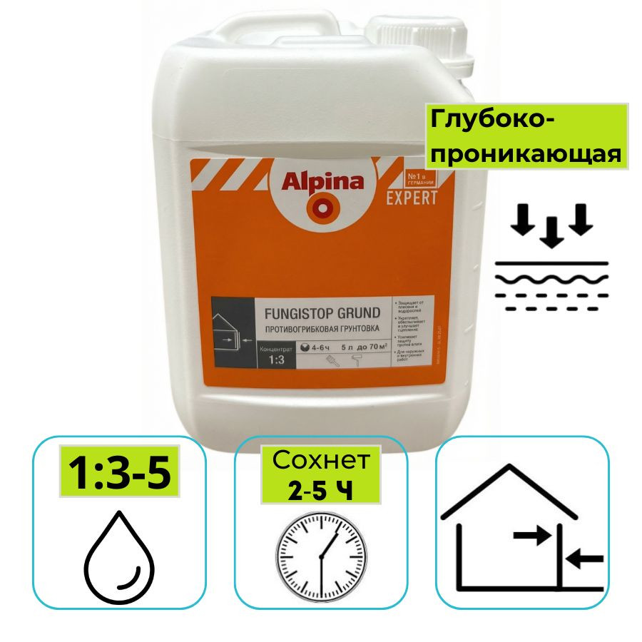 Купить Грунтовка-концентрат Alpina EXPERT Fungistop Grund (1:3-1:5) 5 л можно с доставкой в