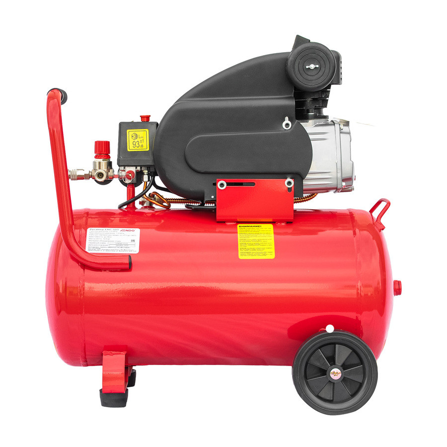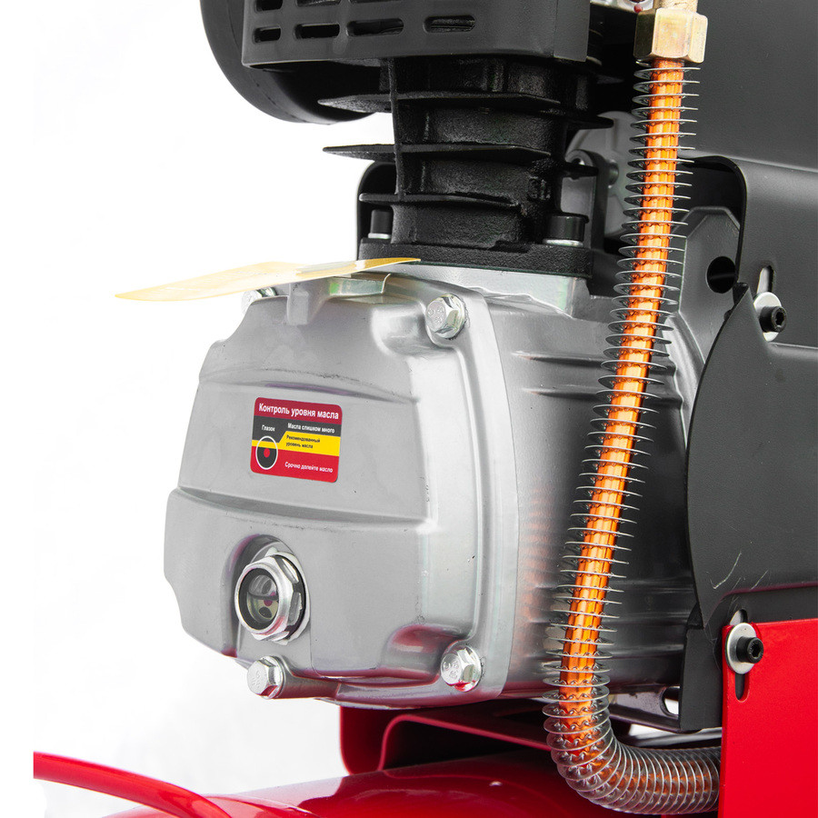- Ресивер 50 литров — увеличенный запас воздуха, меньше запусков двигателя и комфортнее работа.