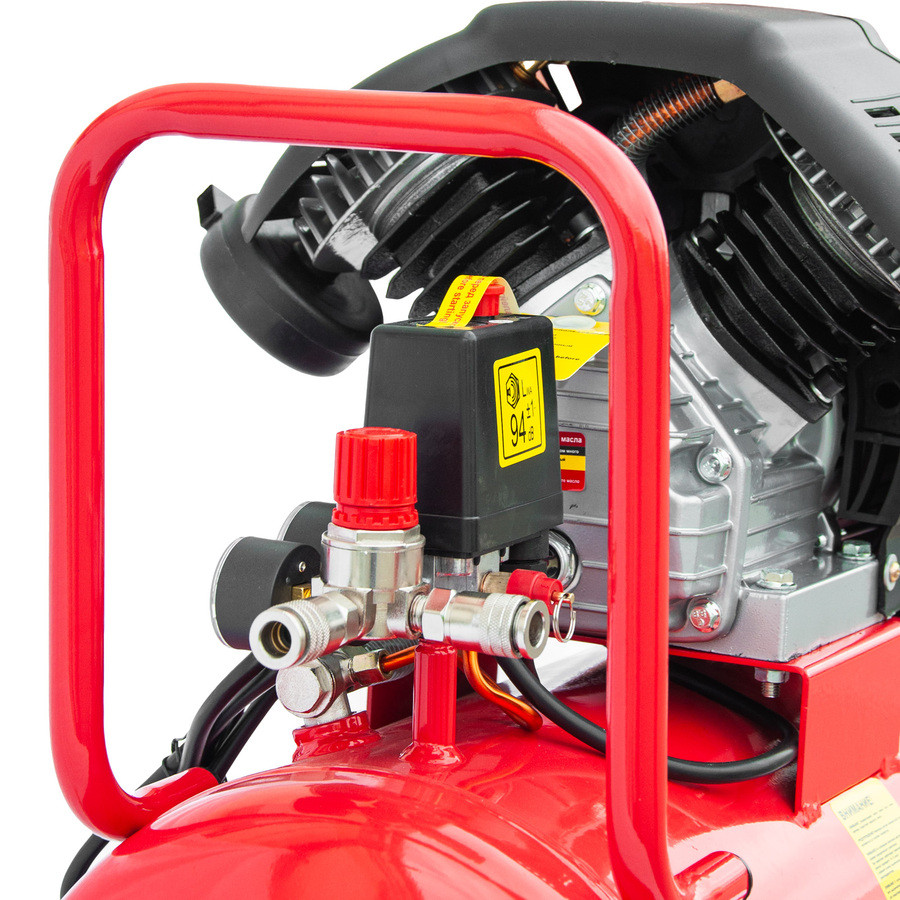 - Усиленная ручка и колеса с резиновыми накладками — комфортное перемещение даже при увеличенном весе компрессора.
