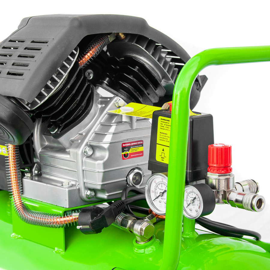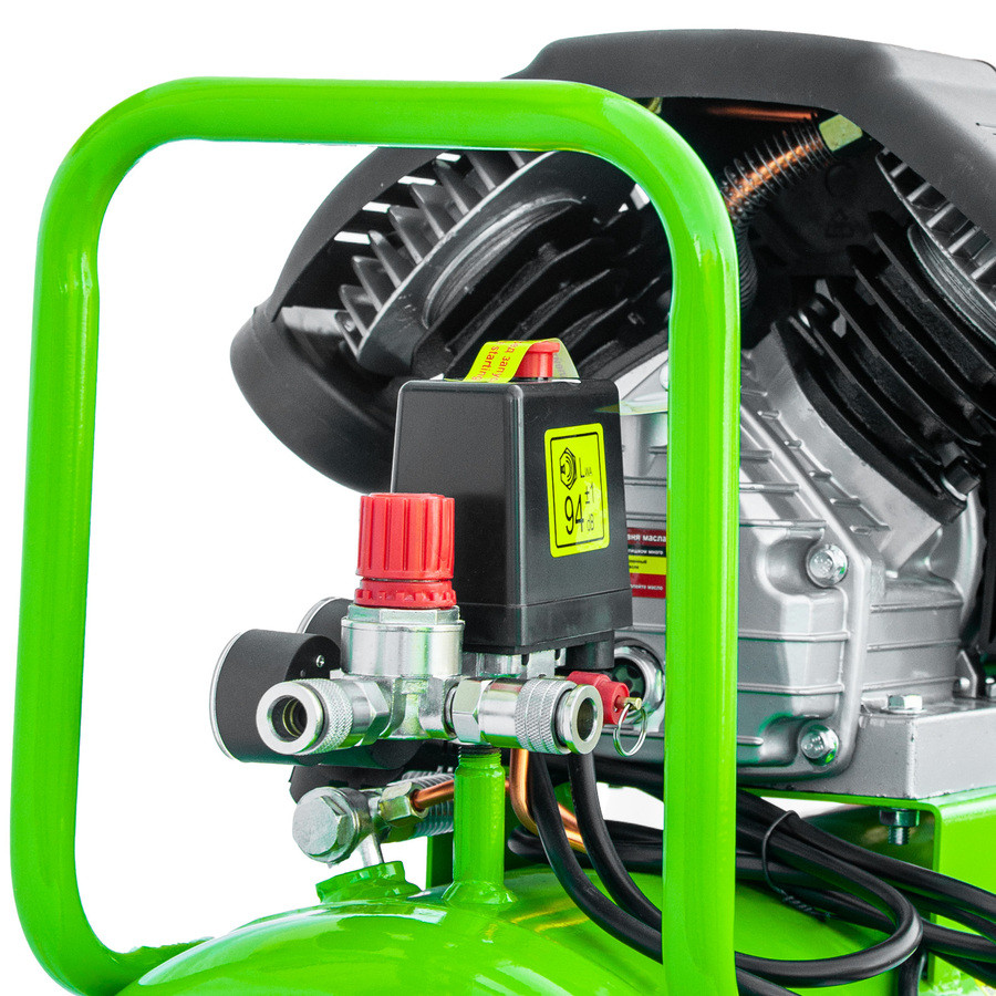 - Производительность 460 л/мин — подходит для частой работы с краскопультом, продувкой, гайковертом и другим пневмоинструментом.