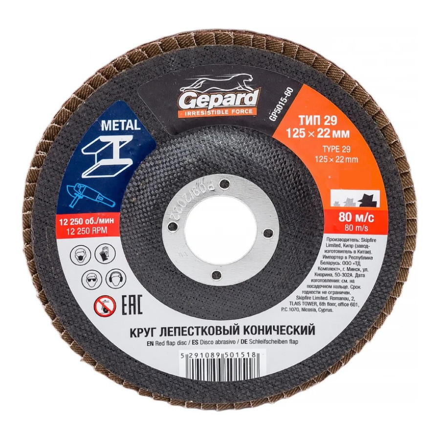 Купить Круг шлифовальный лепестковый конический 125х22 мм P120 Gepard можно с доставкой в
