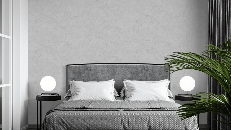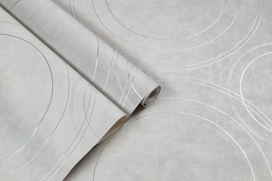Визуальная концепция коллекции Flavio строится на ритмичном повторе линий, создающих иллюзию расходящихся кругов. Это придает интерьеру динамику и глубину, одновременно смягчая строгость лофтового стиля. Металлизированные элементы на матовом фоне добавляют благородства, а мерцающие блестки имитируют инкрустацию драгоценными камнями, превращая стену в цельное декоративное панно.
