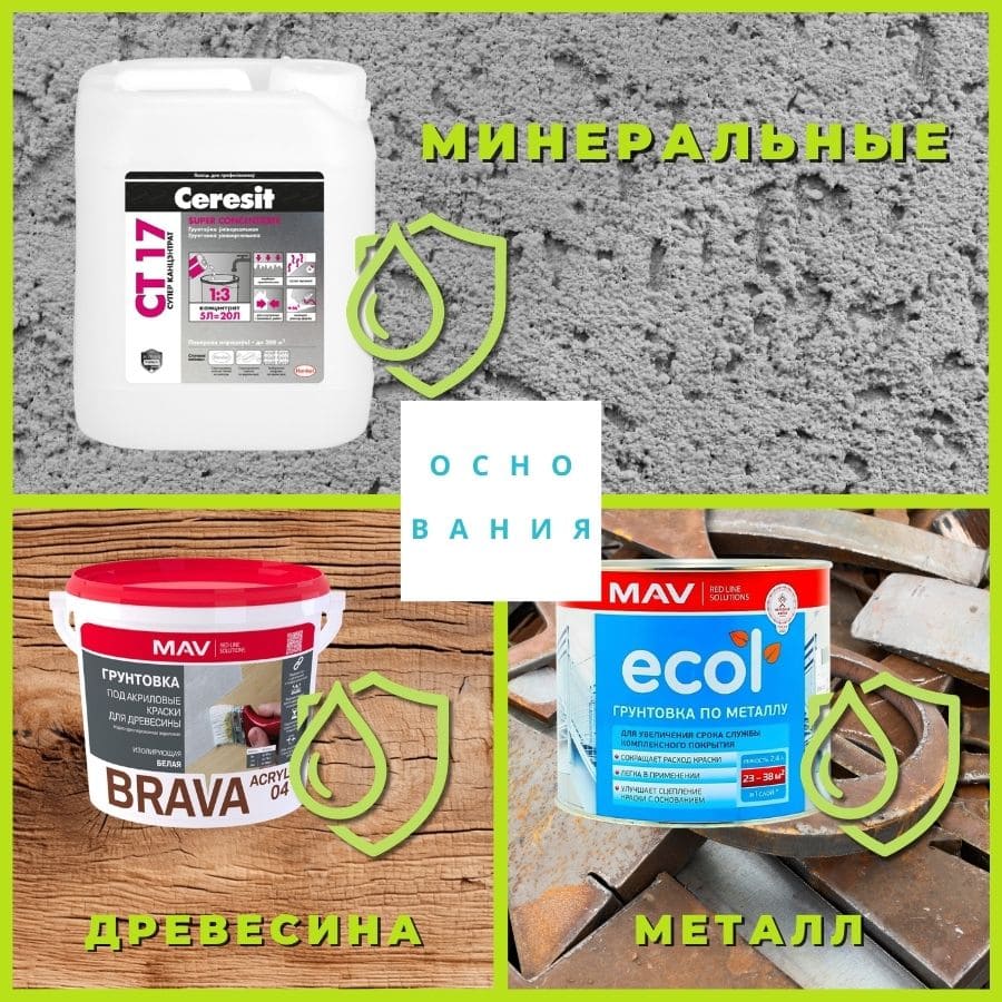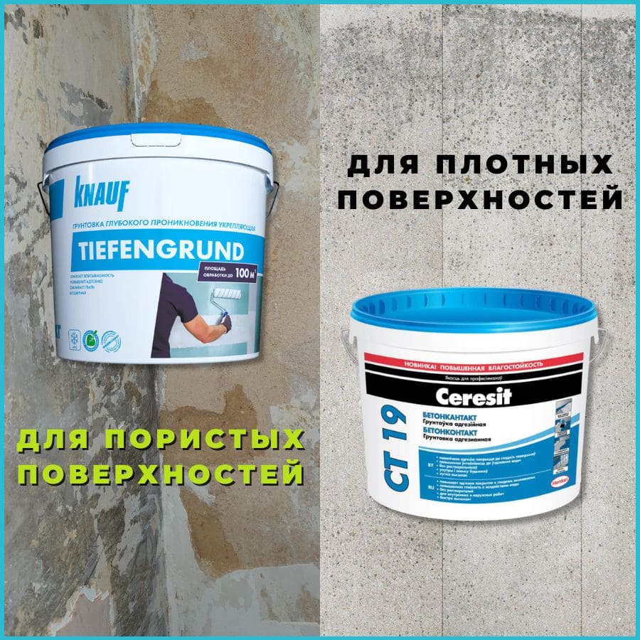 - Где собираетесь работать: внутри помещения или снаружи? Для внешних и внутренних работ нужны разные средства. Исключением являются универсальные смеси, грунтовки «Церезит» СТ 17 Profigrunt, грунт-контакт с кварцевым наполнителем ilmax, мультигрунт «Кнауф» и др.