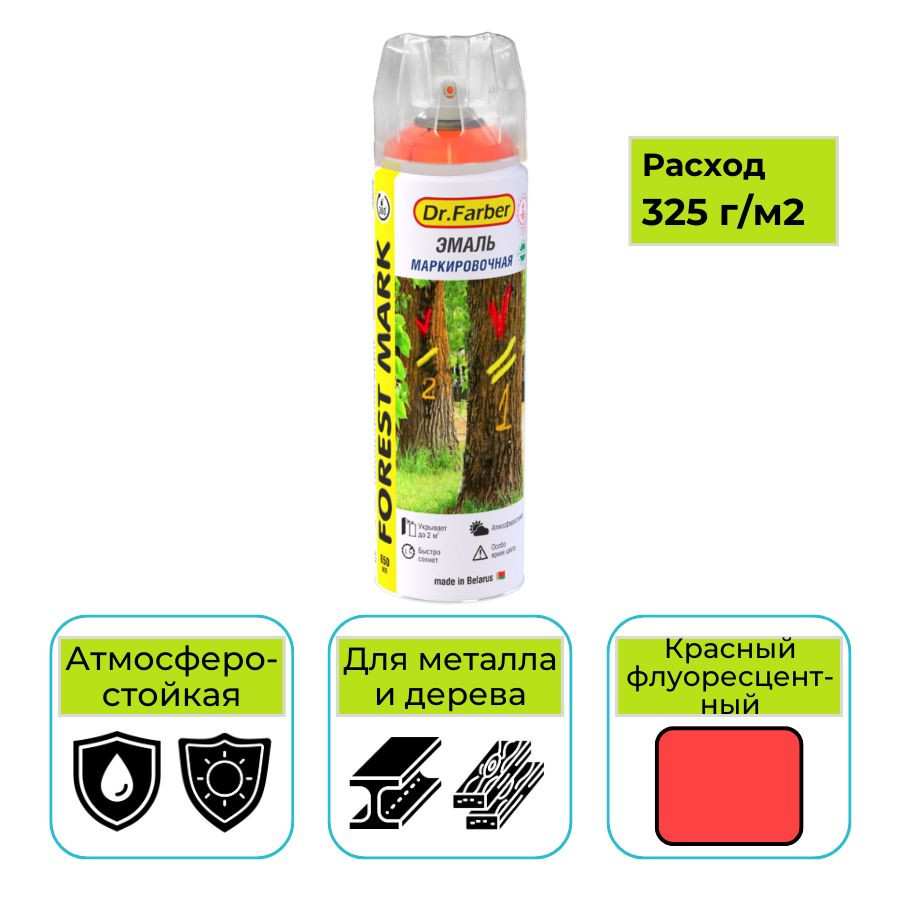 Купить Эмаль-аэрозоль Dr. Farber Forest Mark флуоресцентная красная 650 мл маркировочная для разметки можно с доставкой в