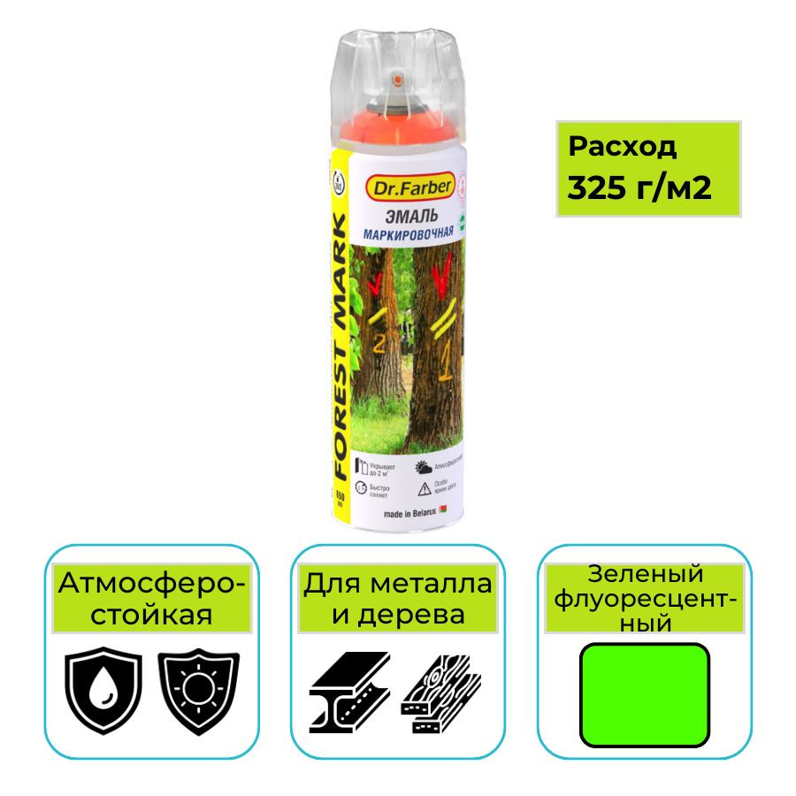 Купить Эмаль-аэрозоль Dr. Farber Forest Mark флуоресцентная зеленая 650 мл маркировочная для разметки можно с доставкой в