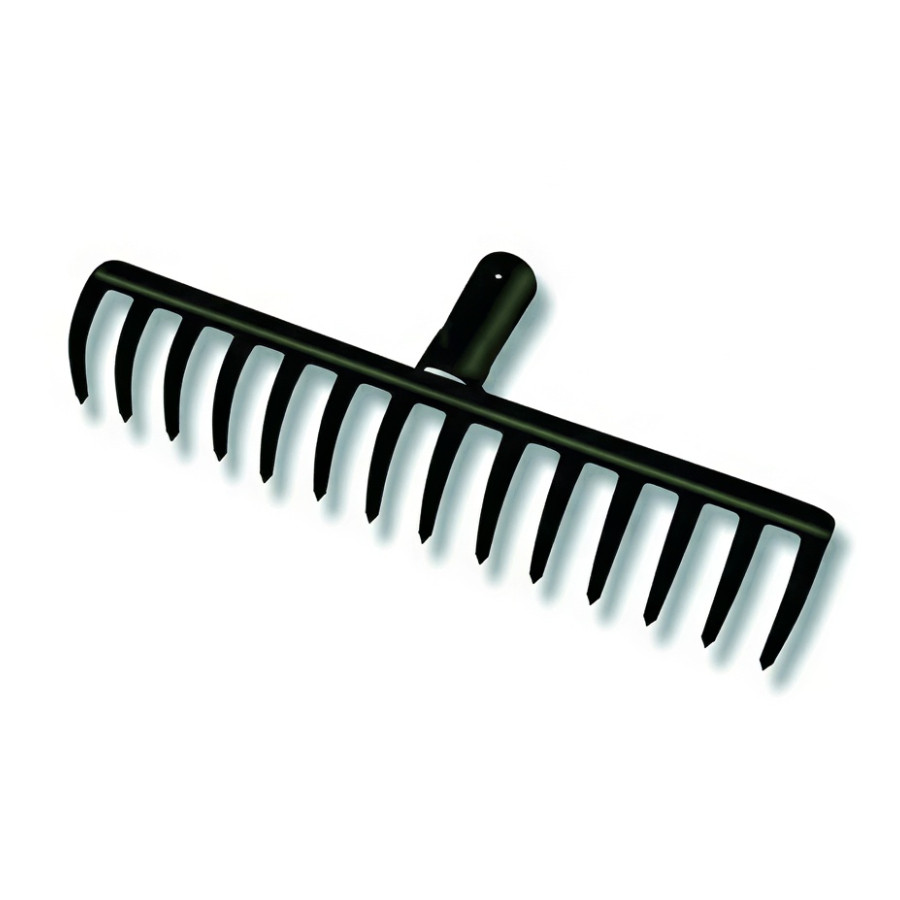 Зубчатые грабли с 16 прямыми зубьями изготовлены из стали с порошковым покрытием, защищающим от коррозии. Толщина зубьев 3 мм позволяет эффективно рыхлить почву и сгребать траву, листву или ветки с поверхности грунта.