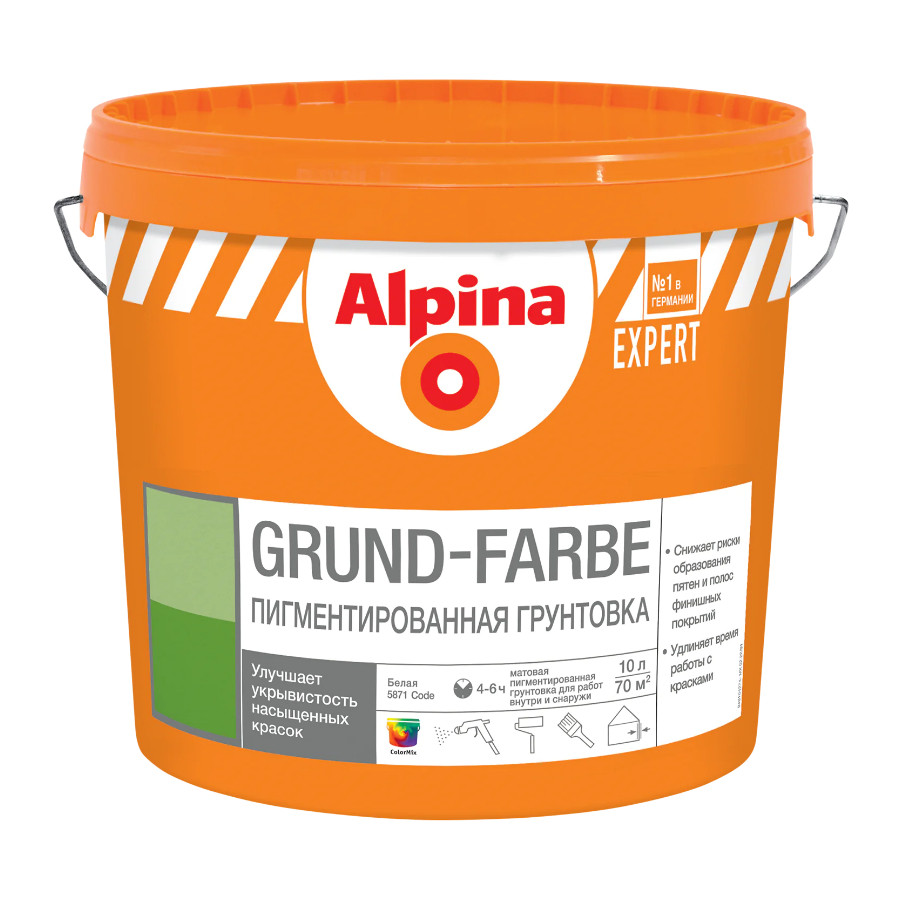 Подробную инструкцию по подготовке и нанесению пигментированной грунтовки Alpina EXPERT Grund-Farbe найдете здесь.