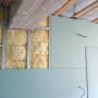 - Кладка гипсовых плит: нанесите монтажный гипсовый клей на горизонтальные и вертикальные торцы плит. Установите плиту и осадите резиновым молотком так, чтобы излишки клея вышли из швов. Толщина шва не должна превышать 2 мм.
