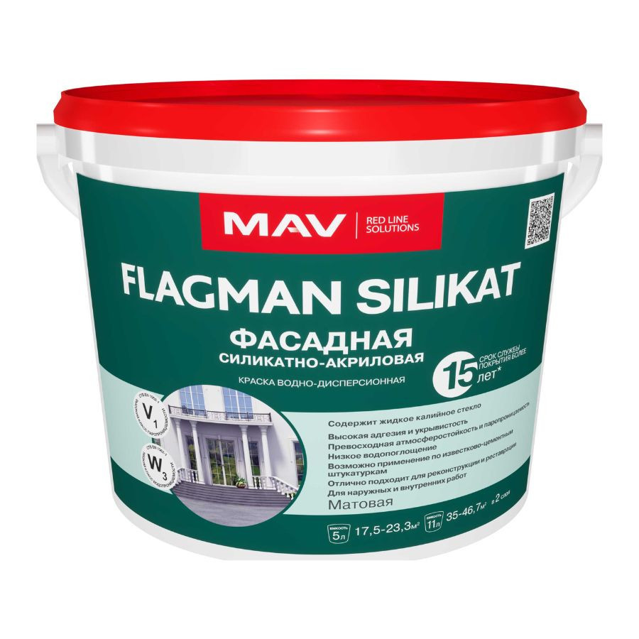 Купить Краска MAV Flagman Silikat белая матовая 5 л можно с доставкой в