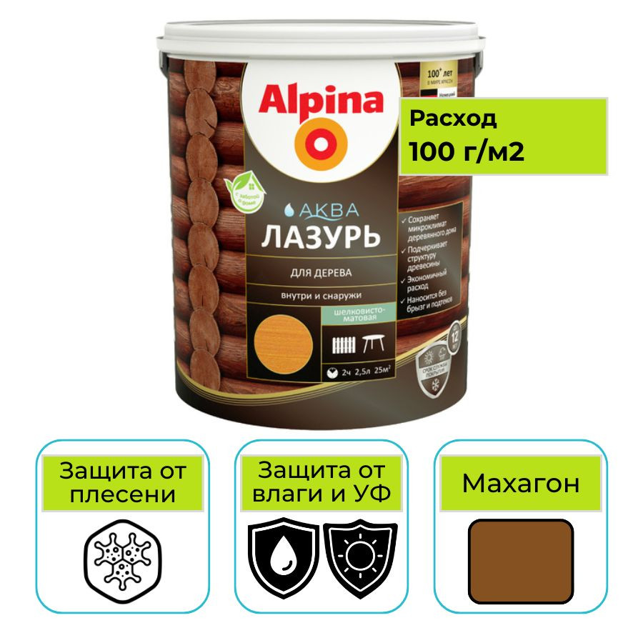 Купить Лазурь для дерева Alpina АКВА махагон 2,5 л можно с доставкой в