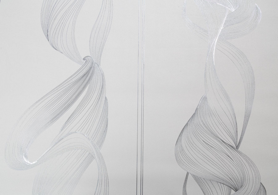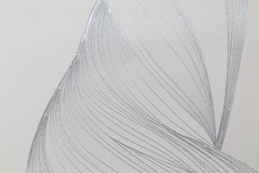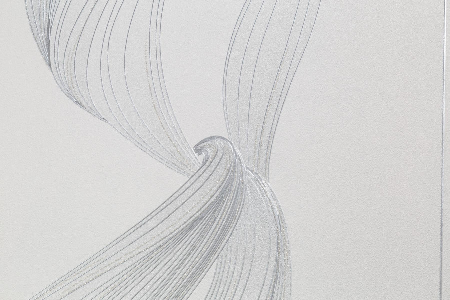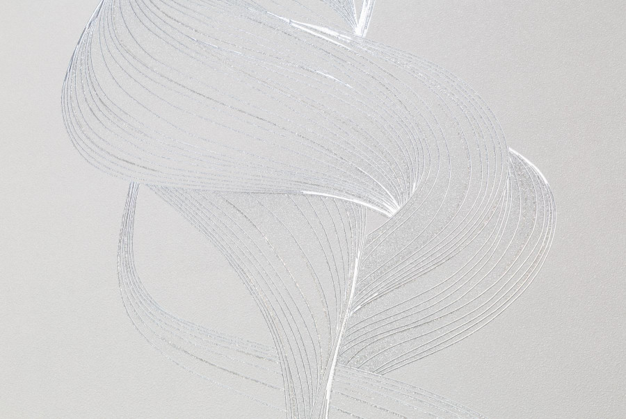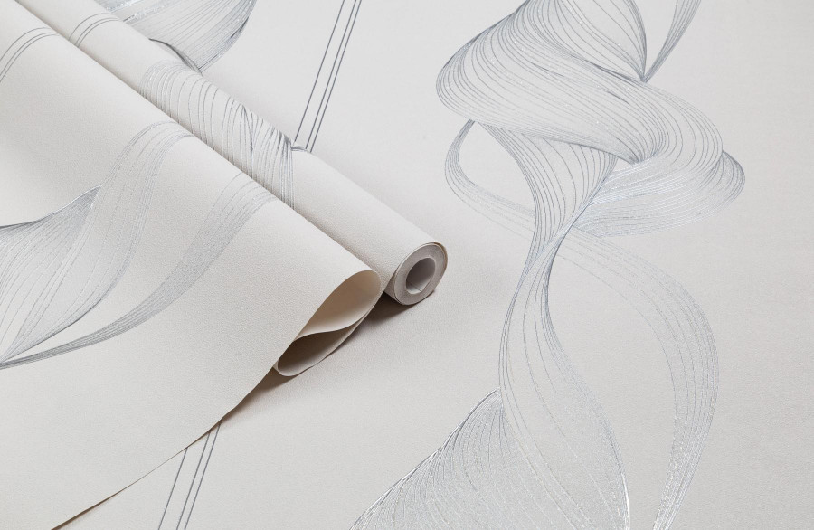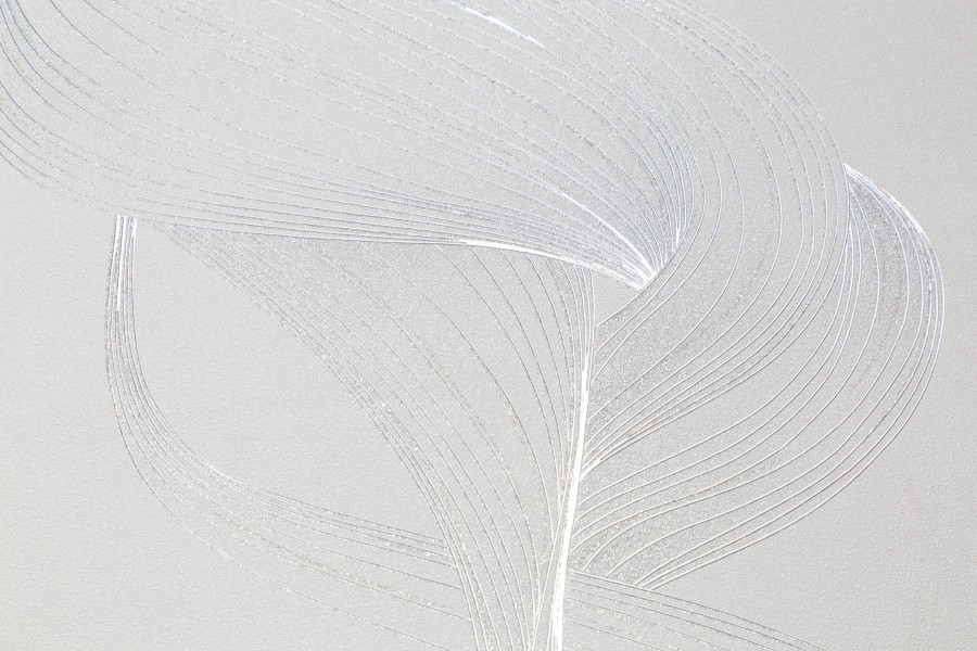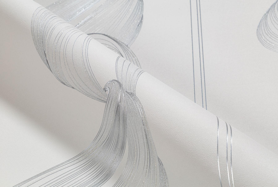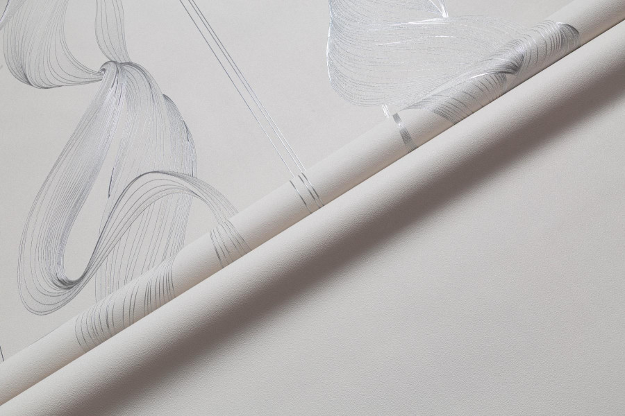 Рисунок коллекции виниловых обоев Палитра Glamur строится на плавных струящихся линиях, которые визуально вытягивают пространство и добавляют интерьеру утончённой динамики. Изящные металлизированные линии и деликатное сияние глиттера при разном освещении создают эффект дорогого свечения, наполняя комнату ощущением тихой роскоши. Матовый компаньон с антивандальной фактурой и подгоном «0» позволяет свободно комбинировать полотна, выстраивая ритм по своему желанию и адаптируя дизайн под любую планировку.