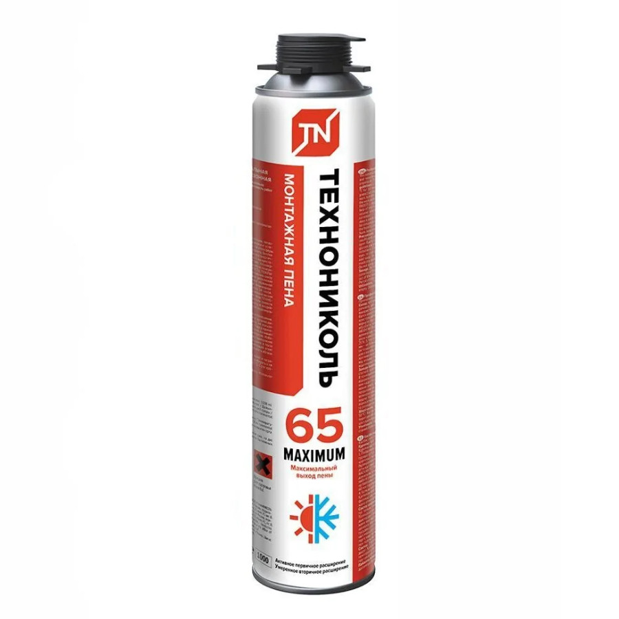Пена монтажная всесезонная ТЕХНОНИКОЛЬ 65 PROFESSIONAL MAXIMUM — это гарантия сохранения свойств и безупречного результата даже в сложных условиях. Выбирайте профессиональную всесезонную пену, чтобы завершить проект быстрее, сэкономить ресурсы и обеспечить долговечность конструкций!