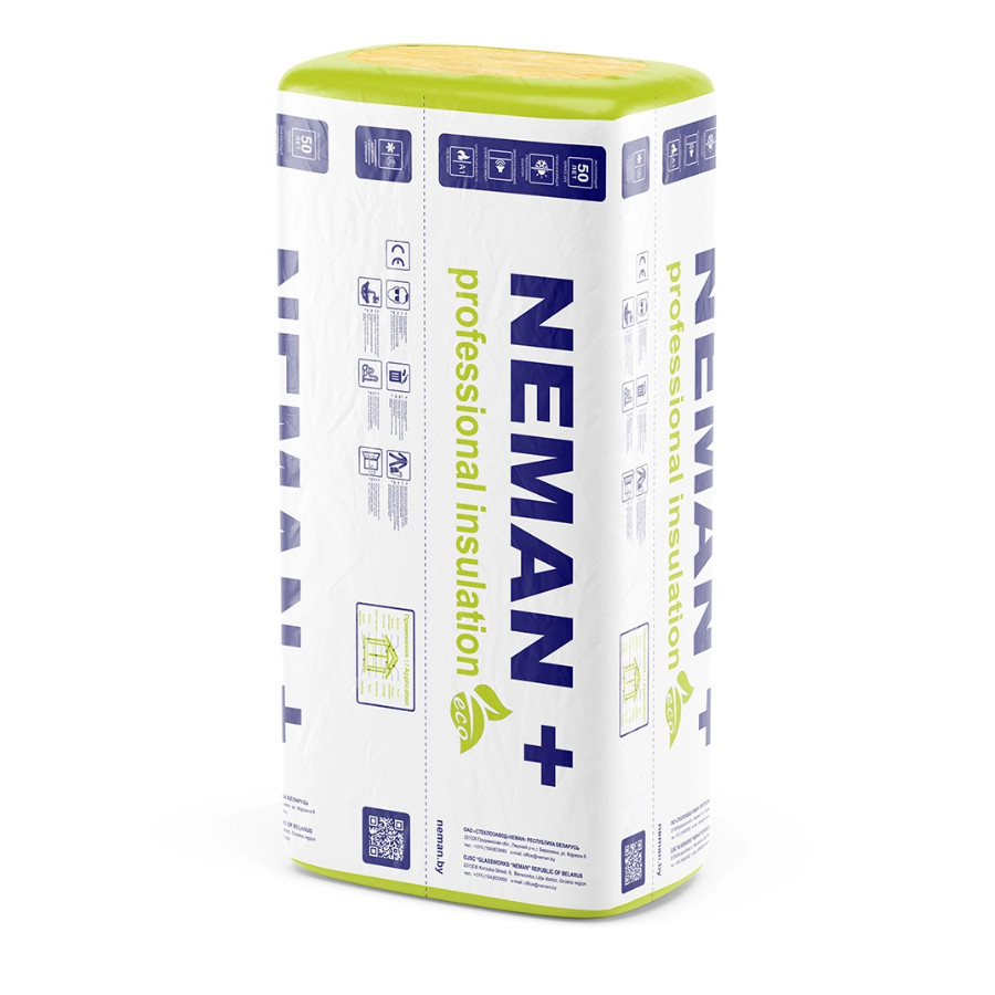 Теплоизоляционные плиты Неман П-15 – это волокнистый материал созданный в основном стеклобоя стеклянных производств, выпускаемый в виде плит размером 610х1220 и толщиной 50 мм.