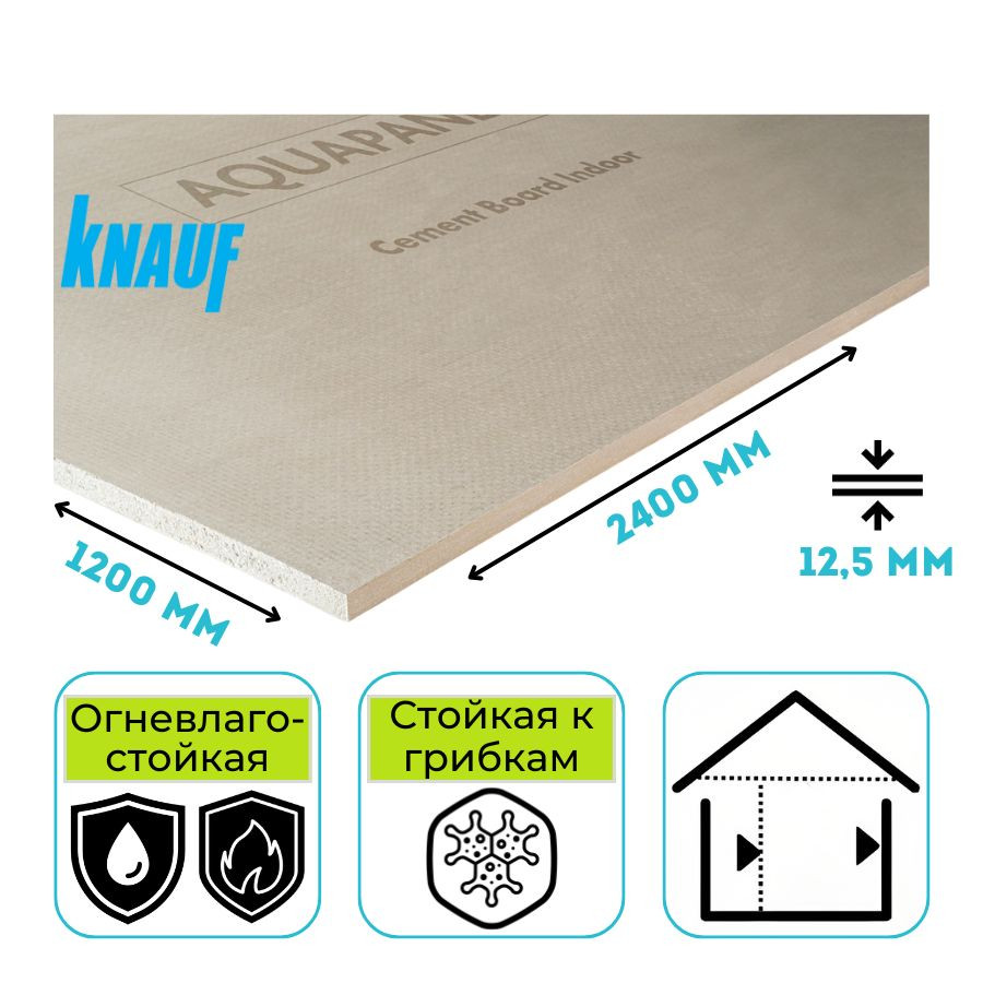 Купить Плита Аквапанель внутренняя 2400х1200х12,5 мм Кнауф можно с доставкой в