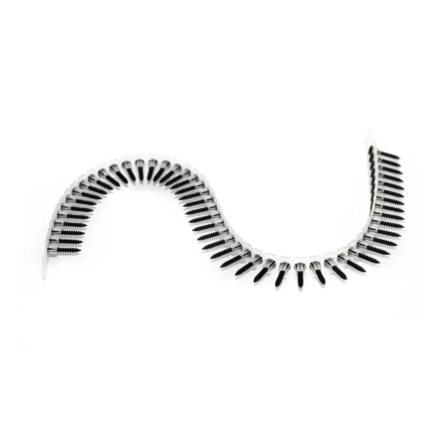 - Полимерная лента держит саморезы на месте, позволяя ленточному шуруповерту работать без остановок.