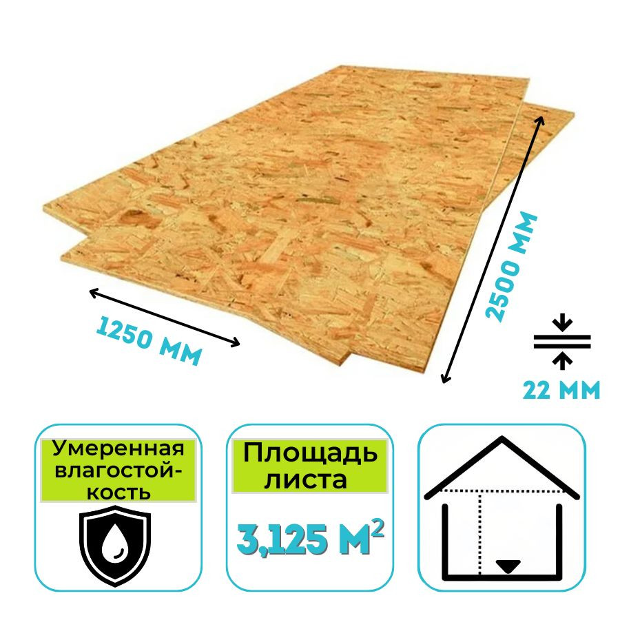 Ориентированно-стружечная плита Ультрадекор 22х2500х1250 мм (ОСП, англ. oriented strand board) — представляет собой лист, состоящий из древесной стружки (тонких щепок), склеенной различными смолами с добавлением синтетического воска и борной кислоты. Стружка в слоях плиты имеет различную ориентацию — в наружных продольную, во внутренних поперечную.
