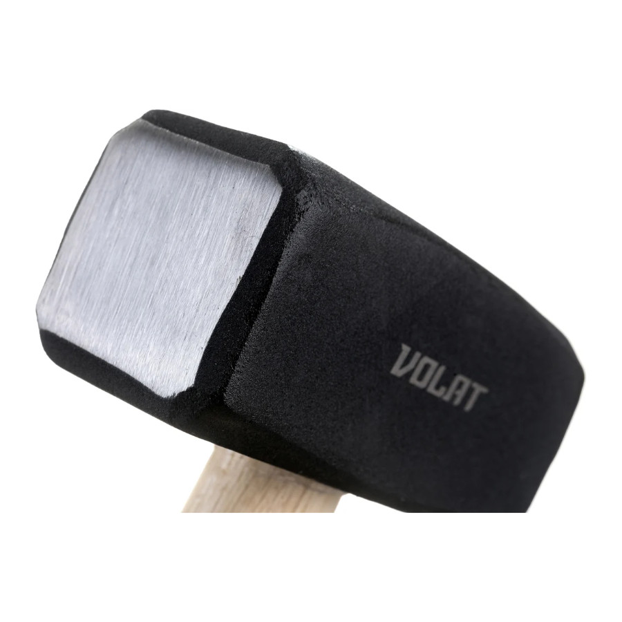 Квадратная форма бойка позволяет точно бить по цели. Боек плотно насажен, поэтому можно размахнуться широко без опасений. Кувалда Волат демонстрирует высокую надежность и служит долго даже при активной эксплуатации. Вес нетто составляет 2,167 килограмма.